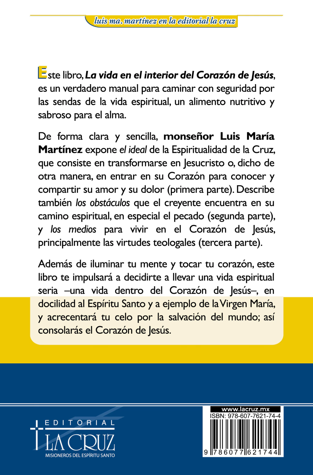 De forma clara y sencilla, monseñor Martínez expone el ideal de la Espiritualidad de la Cruz: la transformación en Jesucristo (primera parte); describe los obstáculos que el creyente encuentra en su camino espiritual, en especial el pecado (segunda parte), y los medios para vivir en el Corazón de Jesús, principalmente las virtudes teologales (tercera parte). 384 páginas